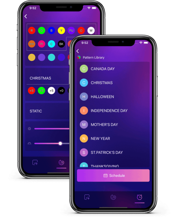 With virtually unlimited colors, patterns, and animations, our programmable system gives you the control and versatility to customize your lighting in our easy-to-use app. Access a library of preset holiday lighting patterns or schedule custom programs that put every color, pattern, animation, and timer option at your fingertips. Trimlight also offers three different spacing options for your lights.